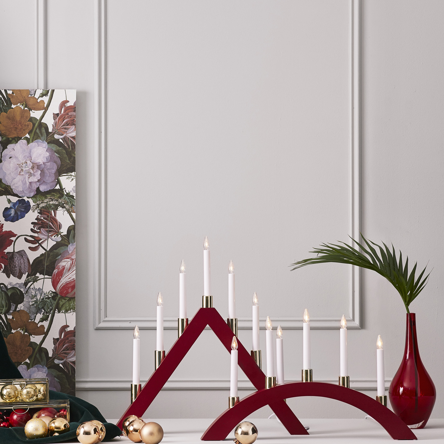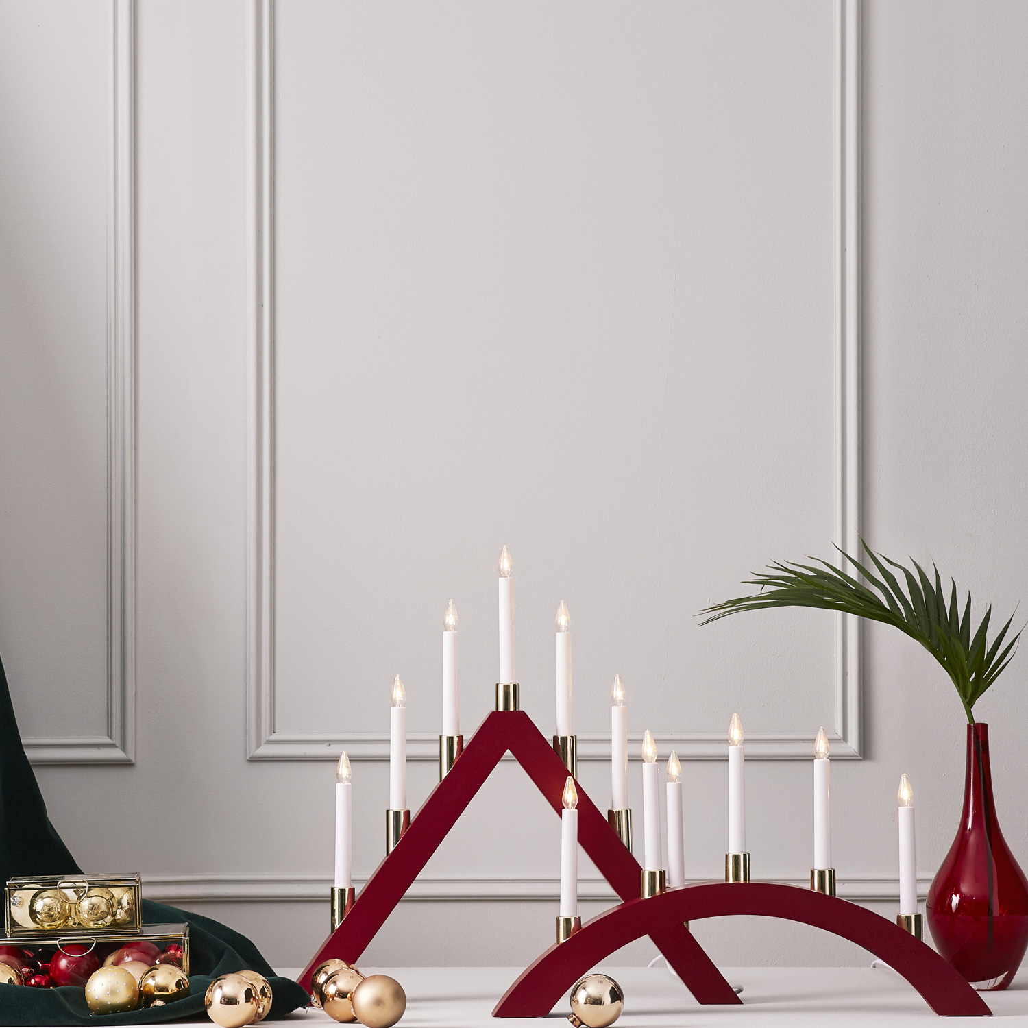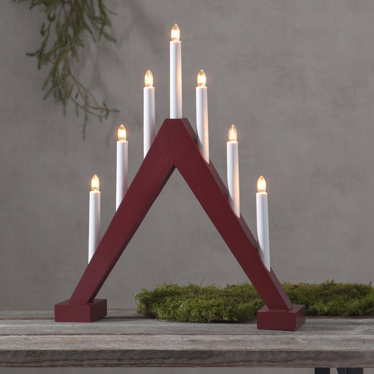 Fensterleuchter Trill - 7 warmweiße Glühlampen - L: 40cm, H: 47cm - Holz - Schalter - Rot