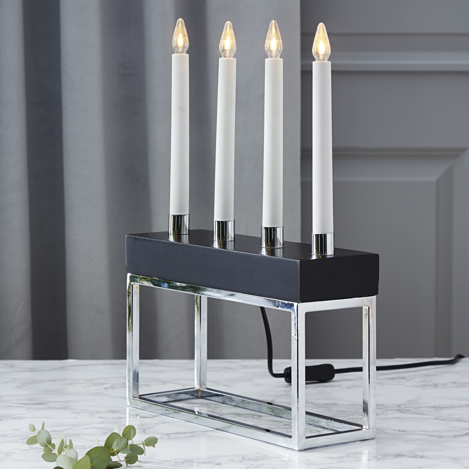 LED Fensterleuchter - Kerzenleuchter - 4flammig - warmweiße LED - H: 40cm - Schalter - schwarz/silber