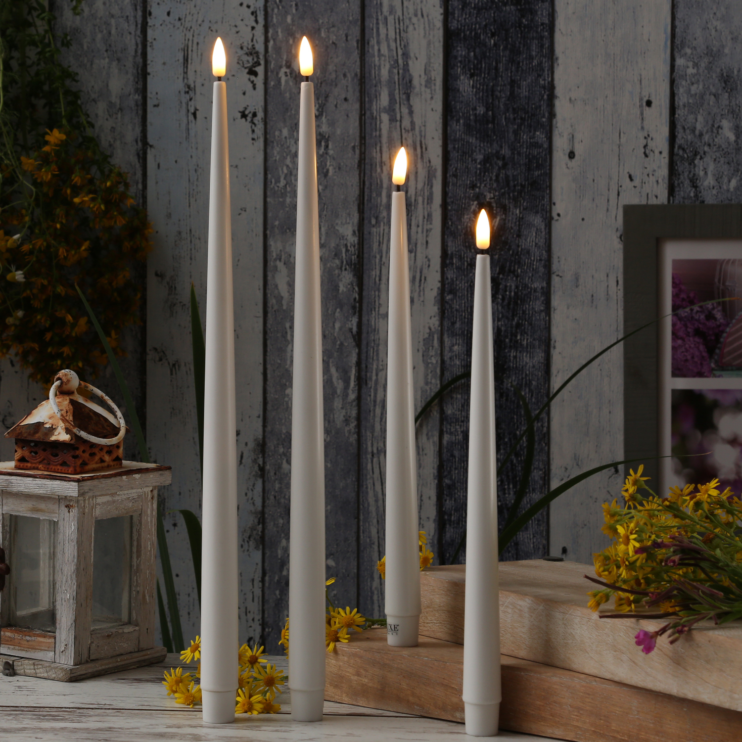 Die LED Tafelkerzen Serie ELLA eignen sich perfekt als Tischkerzen oder in einem mehrarmigen Leuchter. Die nach oben spitz zulaufenden Kerzen sind sehr ästhetisch und können auch bei Hochzeiten, Feiern oder Festen eingesetzt werden.