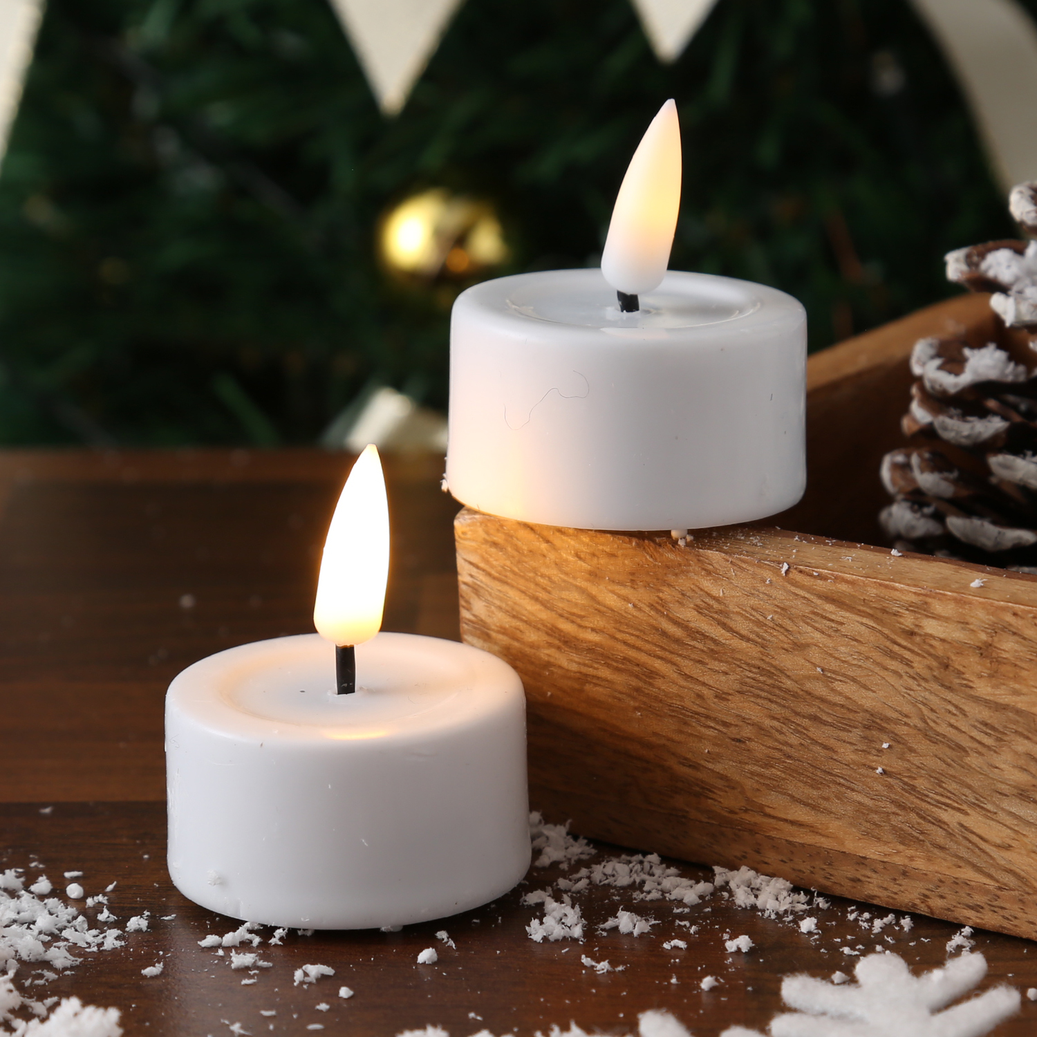LED Teelichter MIA - Echtwachs - realistische 3D Flamme - D: 4,1cm - Batteriebetrieb - weiß - 2 Stk