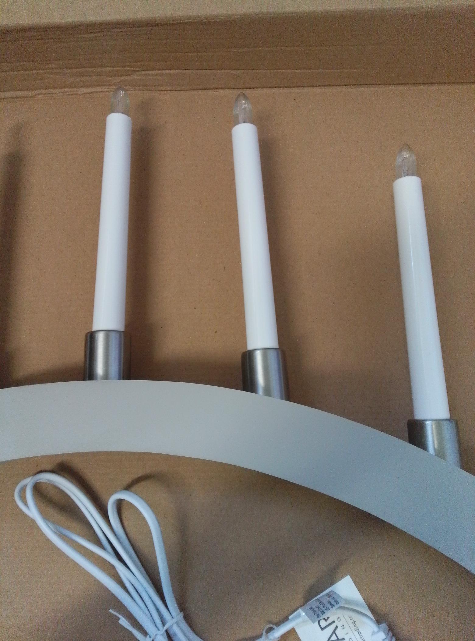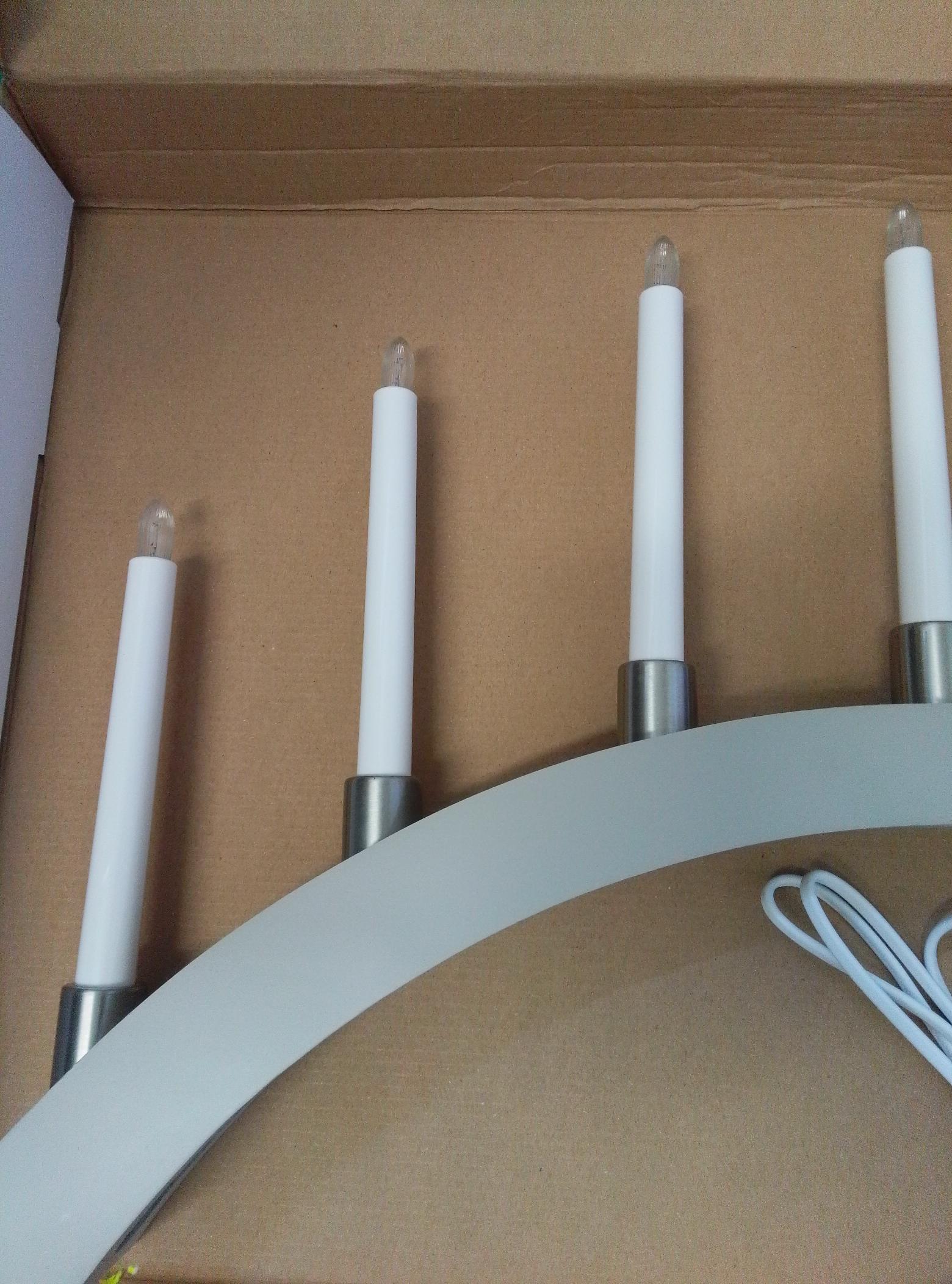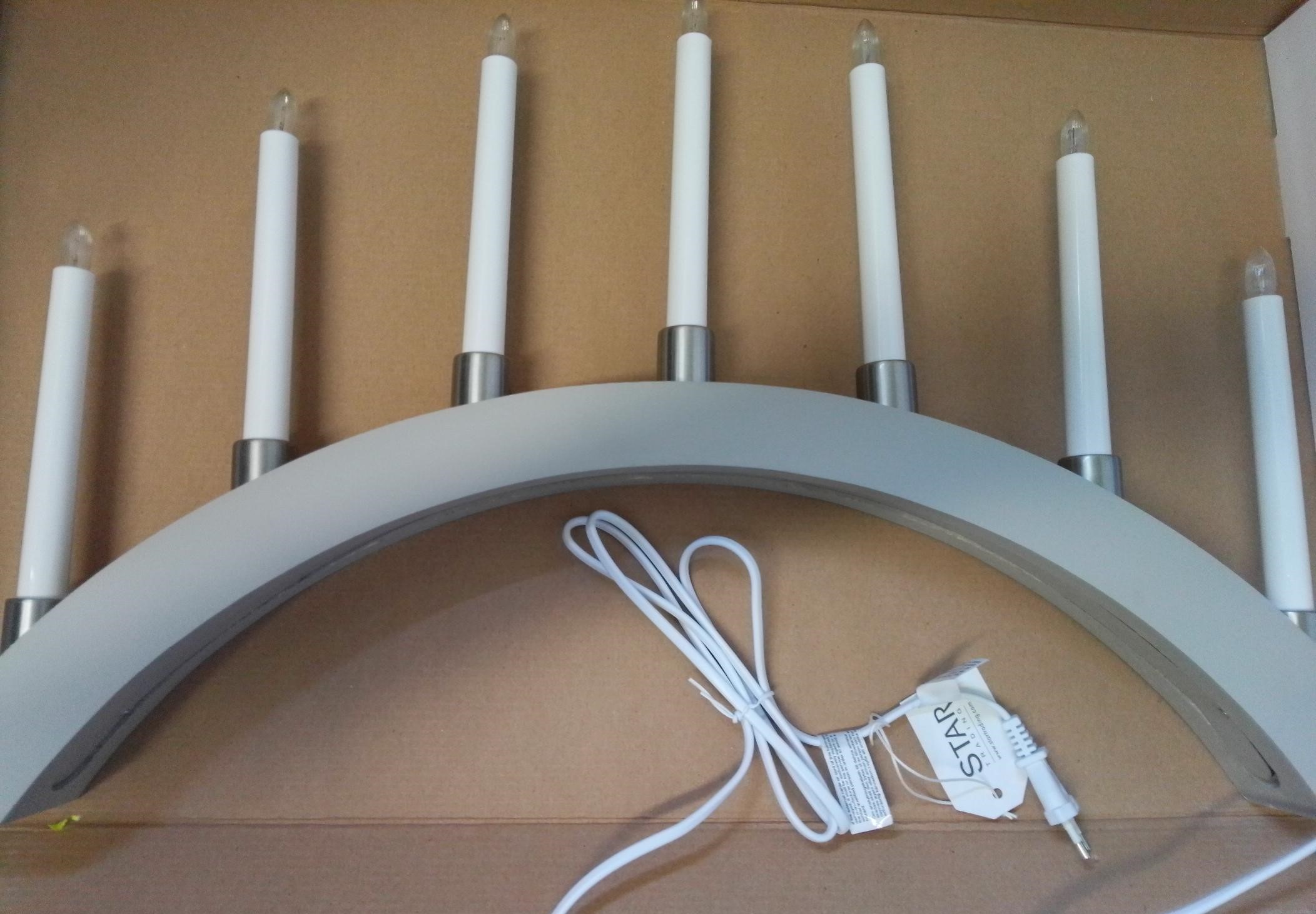- Erscheinung: Bogen-Fensterleuchter mit senkrechten Kerzen-Lampen