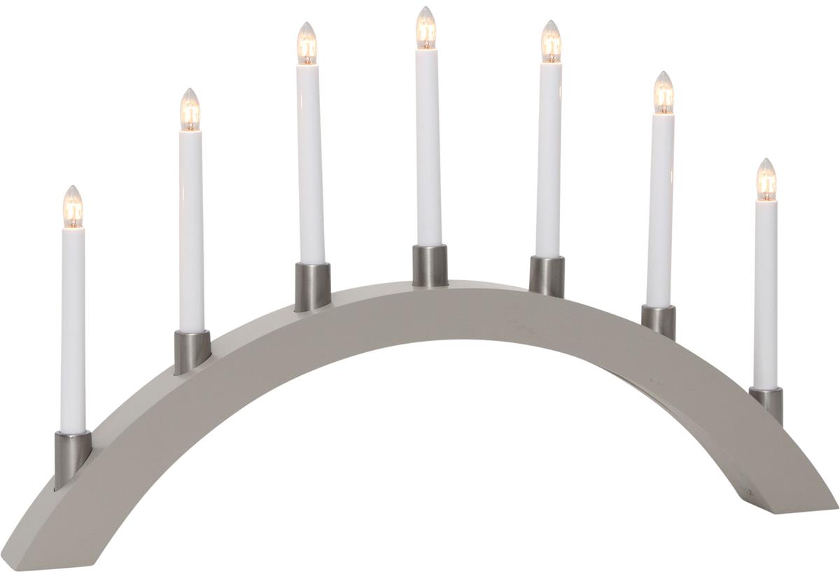 Lichterbogen TALL - 7 warmweiße Glühlampen - L: 67cm, H: 40cm - Holz - Schalter - Grau