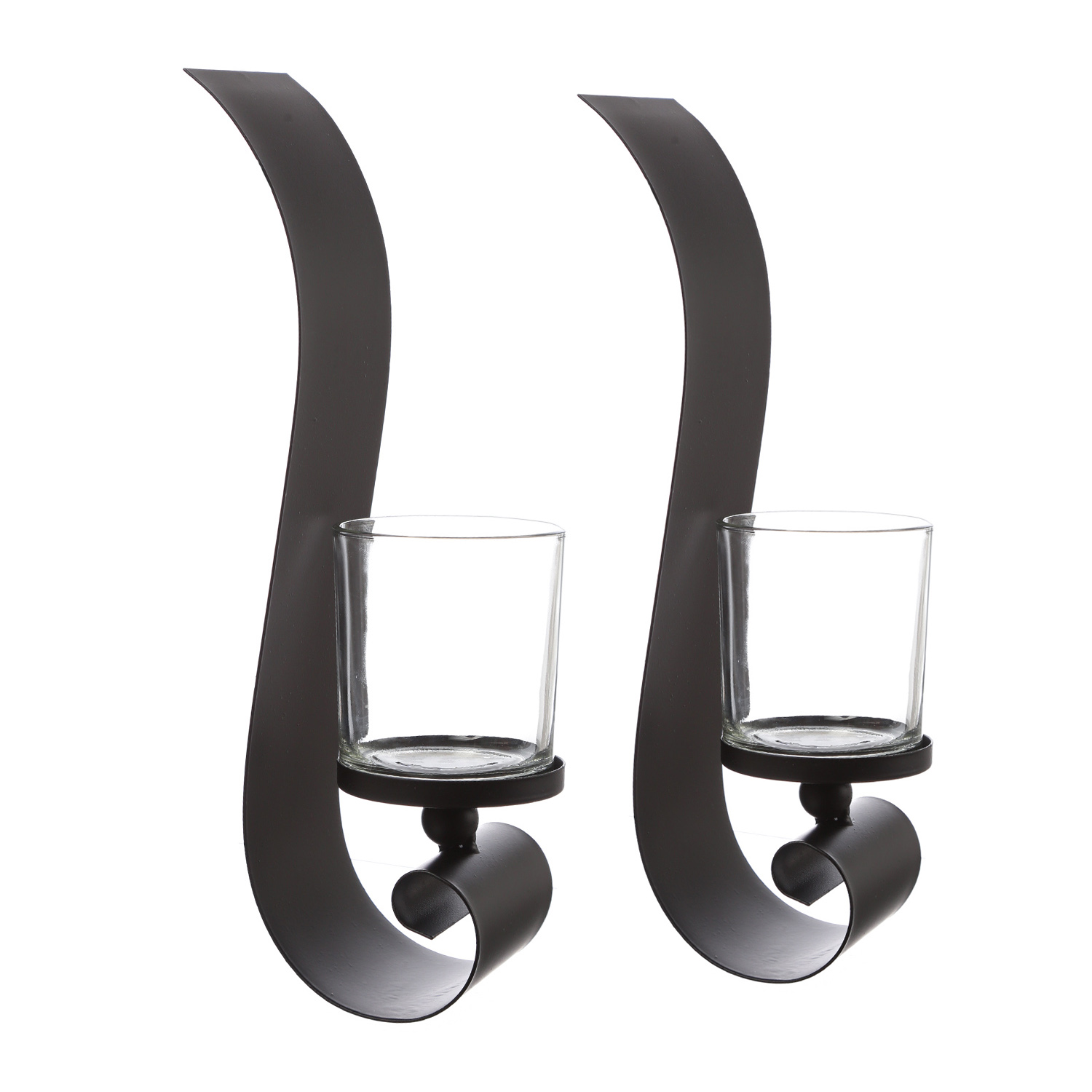 Wandkerzenhalter ROLL - mit Glaskerzenhalter - Metall - H: 35cm - schwarz - 2er Set