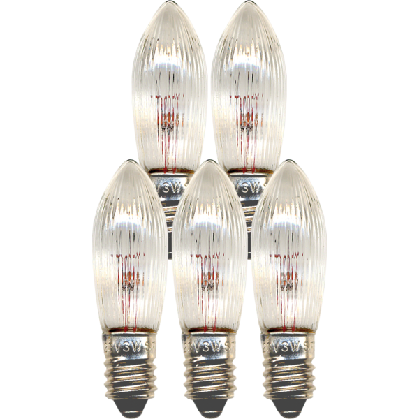 Die 5 rot-weißen Figuren, die hier Spalier stehen, tragen jeweils eine warmweiß leuchtende Glühlampe in Kerzenform.